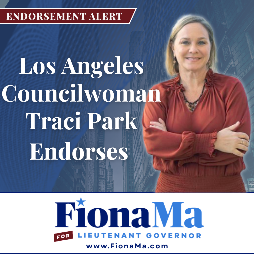 California Lieutenant Governor candidate Fiona Ma is honored to have the endorsement of Councilmember Traci Park. As a dedicated public servant and champion for coastal communities, Traci understands the importance of strong, experienced leadership at every level of government.