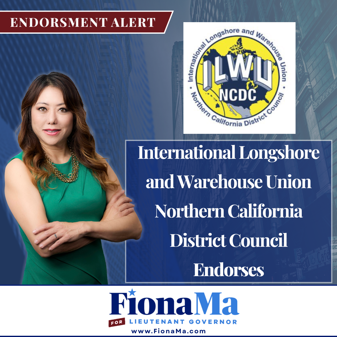 International Longshore and Warehouse Union Endorse Fiona Ma, CPA for Lieutenant Governor of California